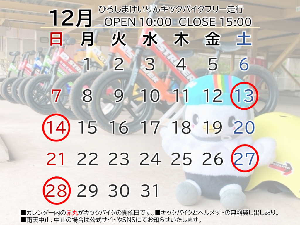 アーバンサイクルパークス広島「ウエストパーク」にてキックバイク(ランバイク・ランニングバイク)フリー走行を開催しております。