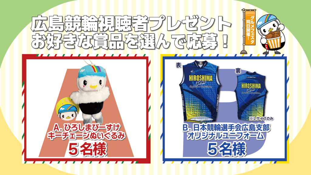 広島競輪公式X「ひろしまぴーすけ」をフォロー&リポストで10名様にすてきなプレゼント!