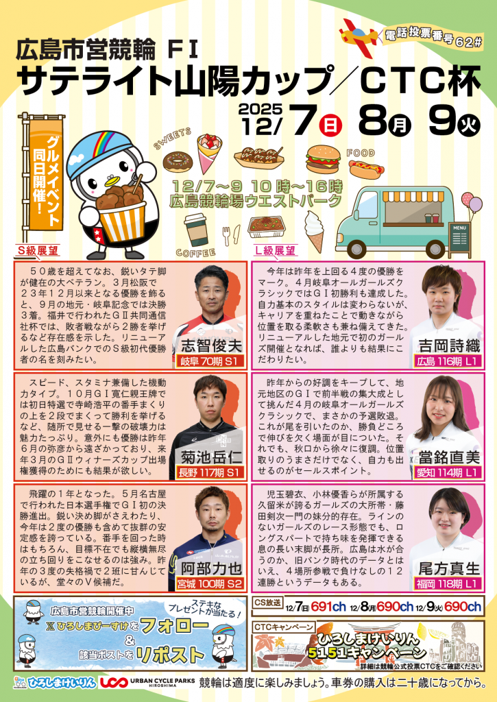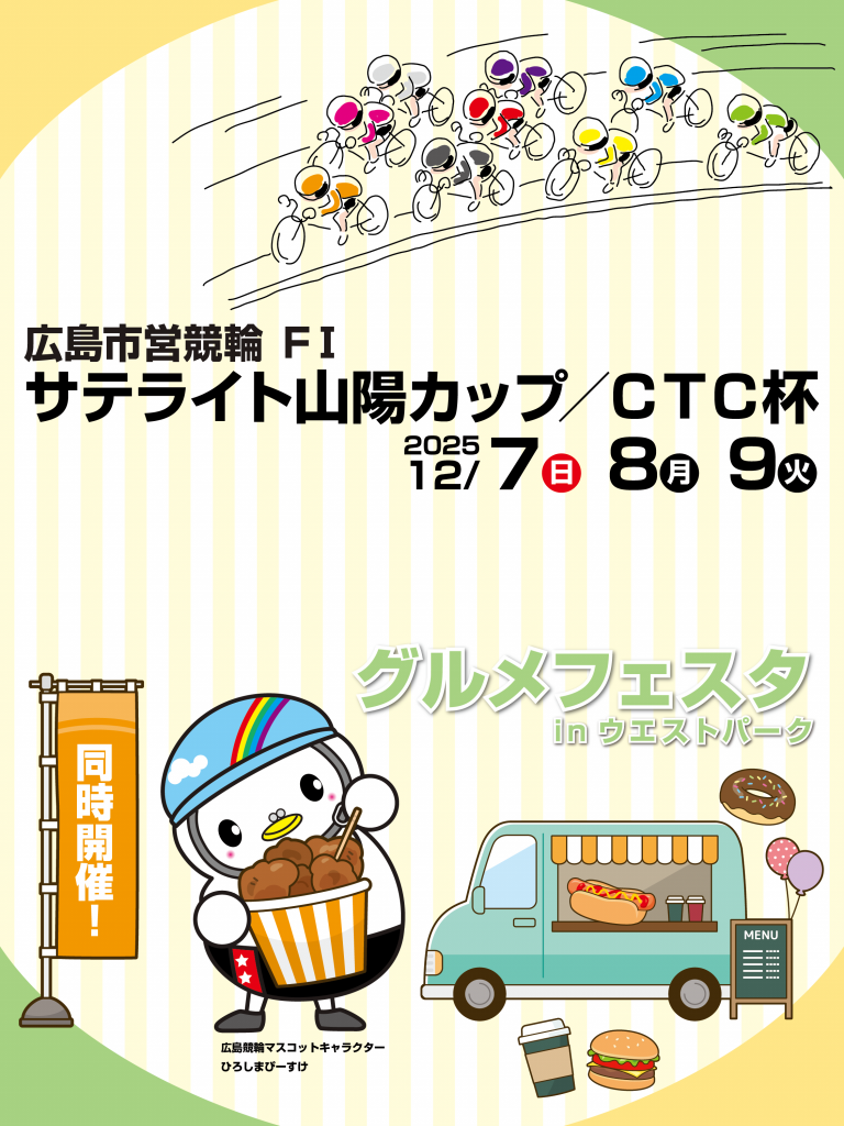 2025年12月7日(日)~12月9日(火)FⅠ『サテライト山陽カップ/CTC杯』を広島競輪場で開催!