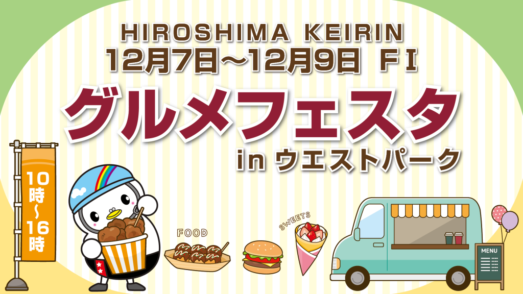 12月7日(日)~9日(火)の3日間、広島競輪場にてグルメフェスタを開催します!