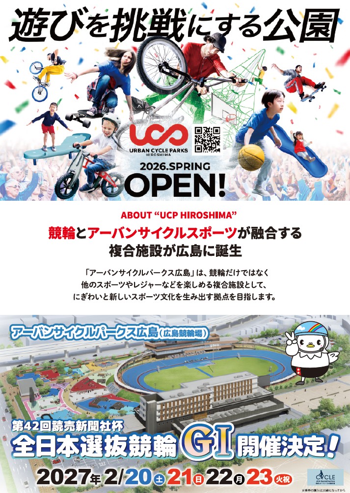 令和8年3月末にアーバンサイクルパークス広島(広島競輪場)として再整備工事が完了することに先立ち、令和8年(2026年)3月8日広島東洋カープオープン戦にてスポンサードゲームを開催します。
