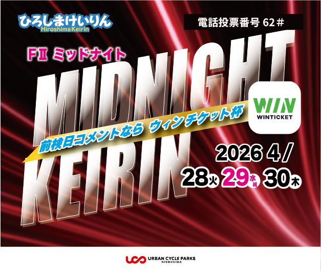 4月28日(火)~4月30日(木)FⅡミッドナイト『前検日コメントならウィンチケット杯』を広島競輪場で開催!